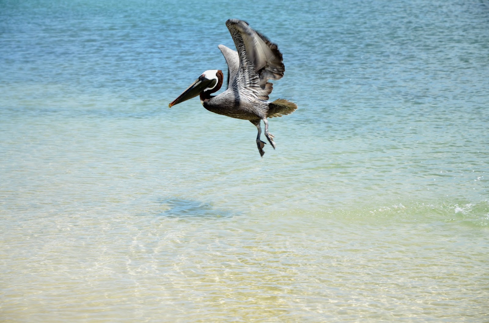 On Floreana Island, we followed the whaler tradition and dropped a letter – in our case a postcard – in the barrel at the Old Post Office –, which by the way arrived a couple of weeks later! While strolling along the beach, there were some pelicans and boobies plunge diving for food.